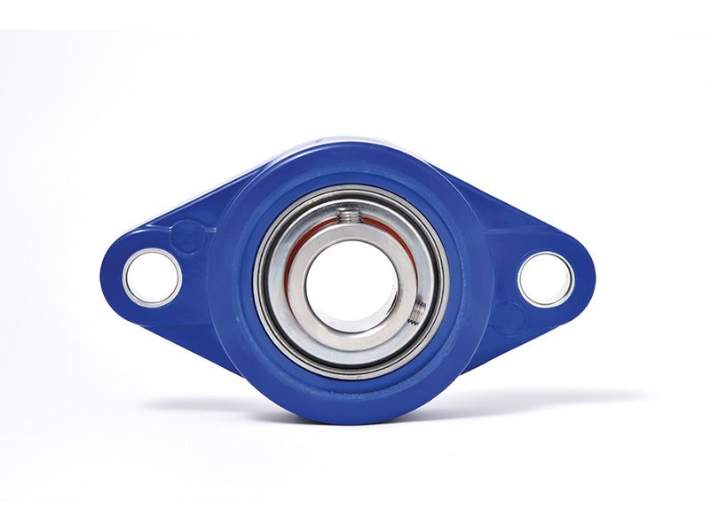 Die 2-Loch Gehäuseeinheit besteht aus einem abgedichteten Kugellager aus Edelstahl (Werkstoff 1.4125), lebensdauergeschmiert mit Fettfüllung NSF H-1 Freigabe und einem Gehäuse aus thermoplastischem Kunststoff. Lebensmittelkonform gemäß EG Nr. 1935/2004.