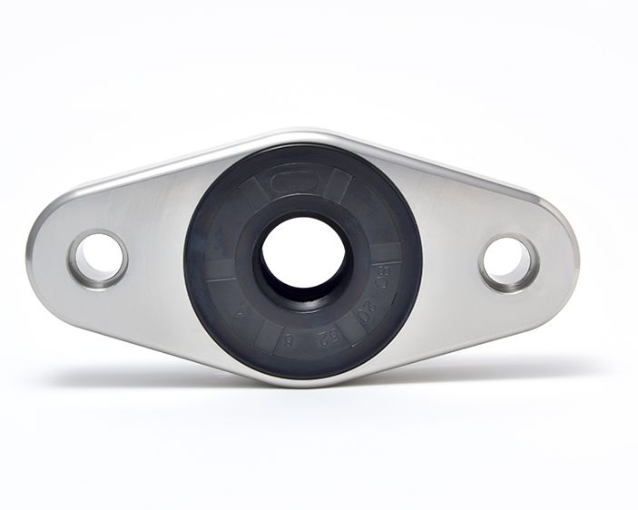 Die 2-Loch Gehäuseeinheit besteht aus einem abgedichteten Kugellager aus Edelstahl (1.4125), lebensdauergeschmiert mit lebensmittelkonformen Fett gemäß NSF H-1, sowie einem Edelstahlgehäuse..