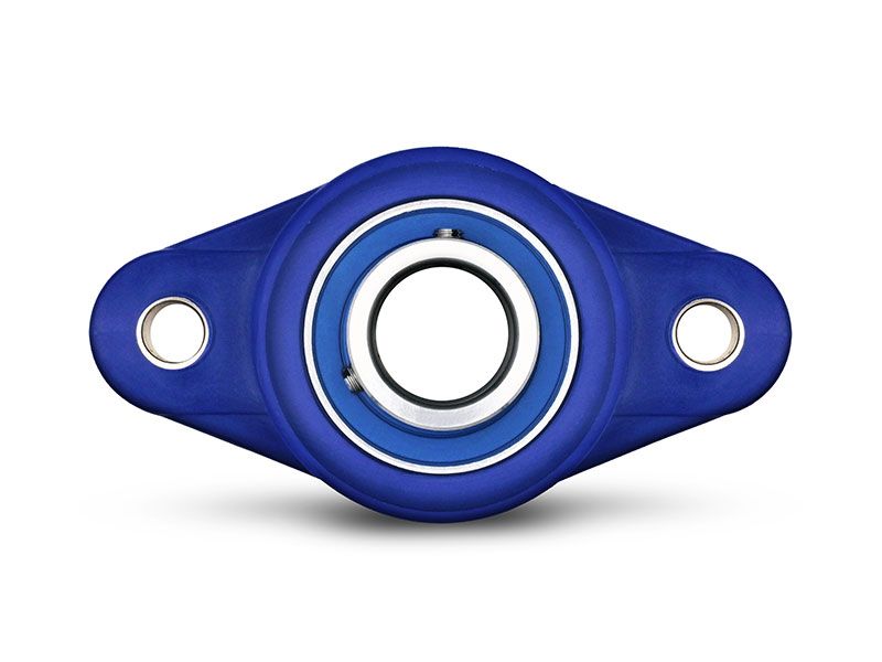 Die 2-Loch Gehäuseeinheit besteht aus einem abgedichteten Kugellager aus Edelstahl (Werkstoff 1.4125), lebensdauergeschmiert mit Fettfüllung NSF H-1 Freigabe und einem Gehäuse aus thermoplastischem Kunststoff. Lebensmittelkonform gemäß EG Nr. 1935/2004.