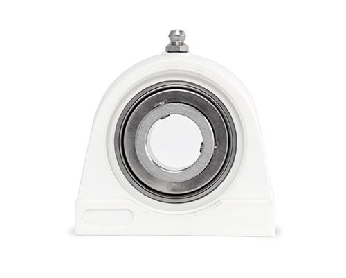 Die kompakte Stehlagereinheit besteht aus einem abgedichteten Kugellager aus Edelstahl (Hochwertiger Werkstoff: 1.4125), lebensdauergeschmiert mit lebensmittelkonformer Fettfüllung NSF H-1 Freigabe, sowie einem Gehäuse aus Kunststoff (PBT).
