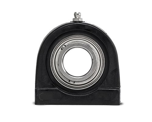 Die kompakte Stehlagereinheit besteht aus einem abgedichteten Kugellager aus Edelstahl (Hochwertiger Werkstoff: 1.4125), lebensdauergeschmiert mit lebensmittelkonformer Fettfüllung NSF H-1 Freigabe, sowie einem Gehäuse aus Kunststoff (PBT).