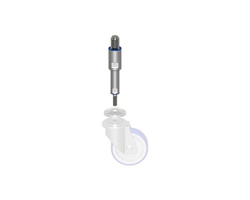 Die TEKNOCLEAN Spindel für Lenkrollen aus hochwertigem Edelstahl überzeugt mit Hygiene-Zertifizierung (USDA) und einem flexiblen Verstellbereich. Ideal für präzise Anwendungen!