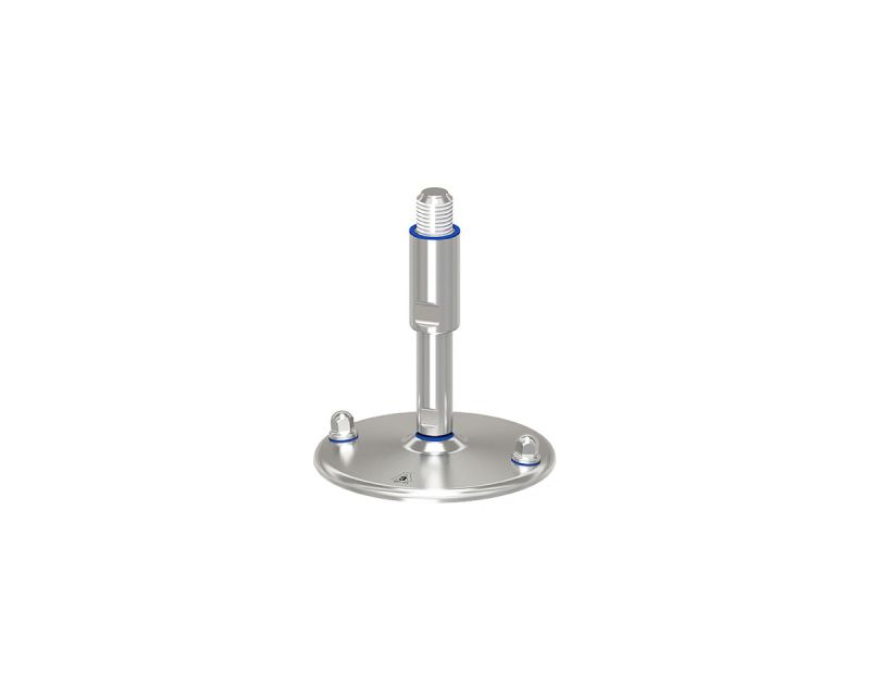Maschinenfuß / Gelenkfuß TEKNO-HYGIENIC 3-A, Ø 200 mm Edelstahl, M24 x 140 mm, Bohrungen